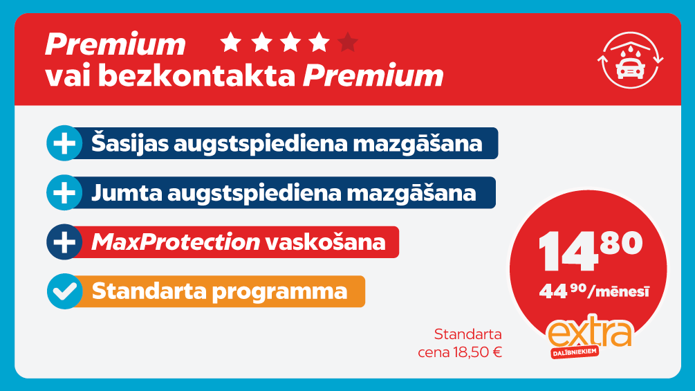 Izvēle ir tavās rokās! Ja mazgā savu auto ar Premium vai Standarta programmu, vari izvēlēties – mazgāt ar birstēm vai bez tām!